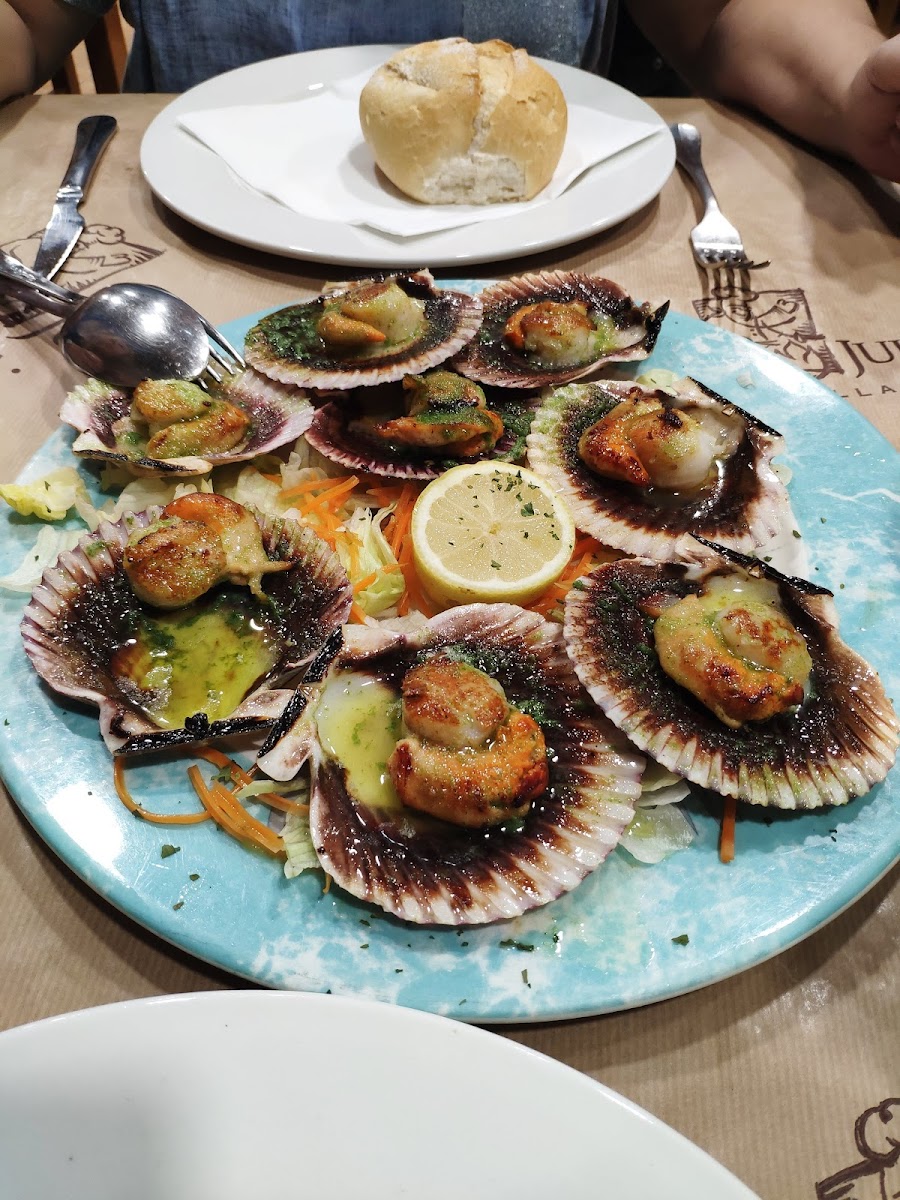 Fuimos porque nos lo recomendaron por cercanía del alojamiento, tenemos que decir que fuimos un domingo día 24 de diciembre a mediodía, nos dieron la Carta pero preguntamos si tenían menú, nos dijo las opciones de menú, de primeros: croquetas de jamón, sopa de pescado, y ensalada, de segundos: pote, entrecot, dorada a la espalda, pimientos relleno de bacalao. Decidimos comer menú, las croquetas no tenían jamón no de vista, no estaban mal trabajadas pero difíciles de comer, el entrecot muy bueno, y el pote bueno también y éste abundante. Pedimos vino con casera muy bueno. De postre tarta de almendra y arroz con leche, la tarta muy rica (no sabemos si es hecha por ellos) el arroz con leche subido de Limón. Precio del menú, 20€ por persona. El PAN muy bueno también.